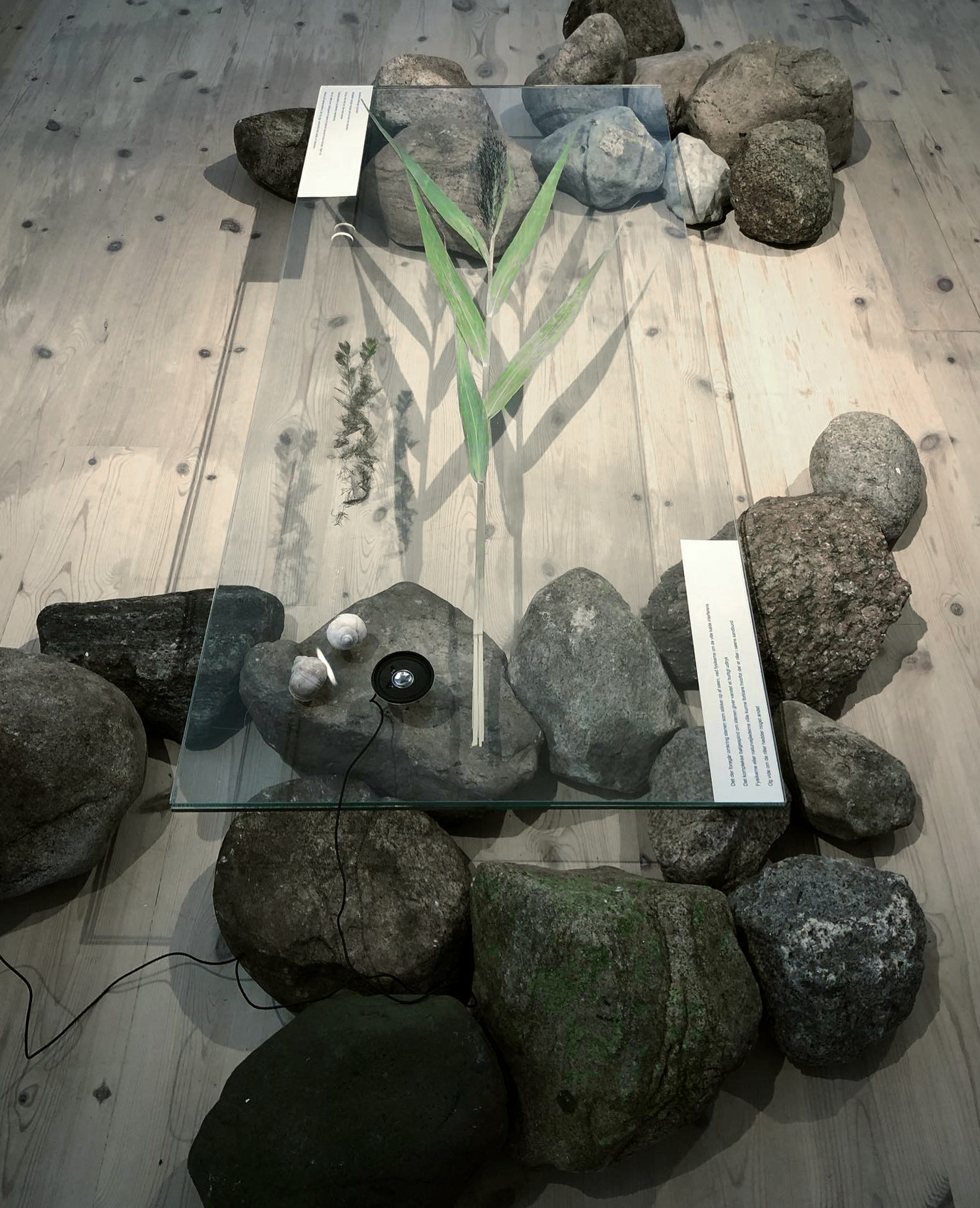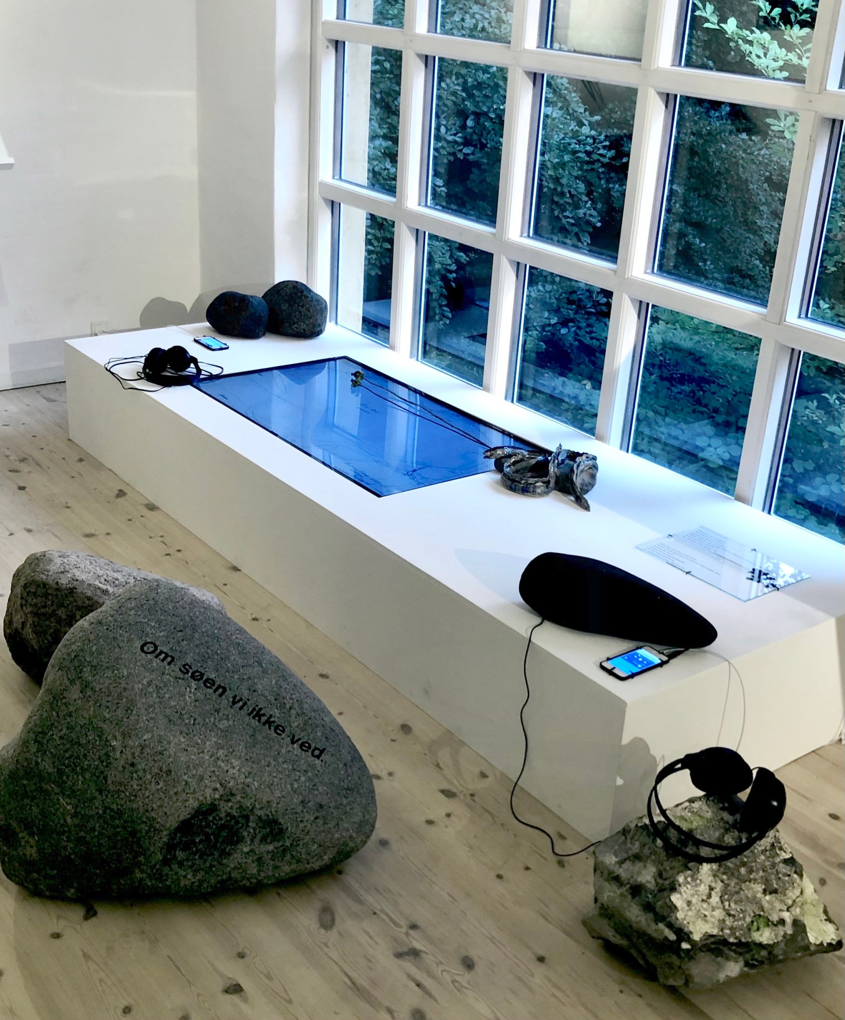 Installation: Fotografi, 3 videoer, objekter, arkivalier, lydmontager, tekstprints, natursten fra sølandskab ved Søndersø, 2 live-performances, 2 sten med inskriptioner installeret i søområdet.